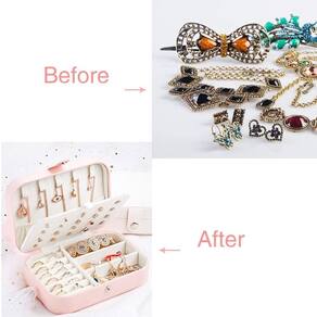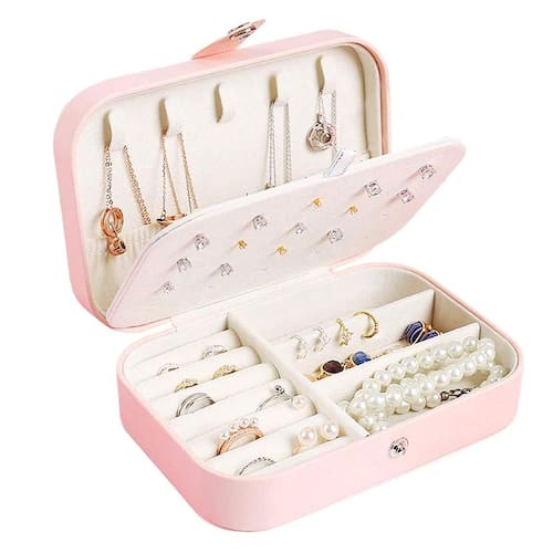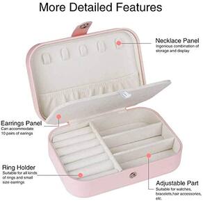 Caixa de viagem de joias, estojo de joias pequeno, organizador de joias de viagem de couro PU de camada dupla para mulheres, meninas para colar e brincos (rosa prímula)
