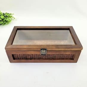 Habilmente combinando a solidez da madeira com a leveza e o toque artesanal do rattan, esta caixa apresenta uma tampa superior em vidro. Esse detalhe permite visualizar o conteúdo, ideal para expor itens de coleção, joias, relógios ou até mesmo pequenas lembranças. Com 9,5 cm de altura, 30 cm de largura e 16 cm de profundidade, ela tem o tamanho perfeito para ser disposta em mesas de centro, aparadores, estantes ou penteadeiras.