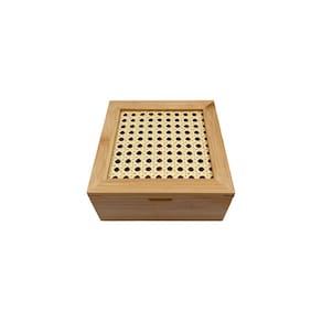 Esse é o porta chá de bambu palhinha 4 divisórias da OIKOS.Versátil: dá para guardar chás, especiarias para gin, acompanhamentos para a hora do cafezinho, doces, bijuterias e mais!Tudo em seu lugar: com 4 divisórias que permitem separar e organizar melhor os objetos. Decorativo: o detalhe da palha e a cor natural são atemporais e combinam com diversos estilos de decoração, deixando o ambiente mais charmoso e rústico. Feita de bambu: material leve e ecologicamente correto.Durável e higiênico: o bambu é resistente e tem propriedades que evitam a proliferação de bactérias, só precisa lavar e secar de acordo com as recomendações, combinado?Dimensões do produto:Comprimento: 16cmAltura: 8cmLargura: 17cm