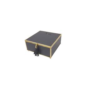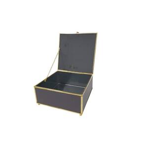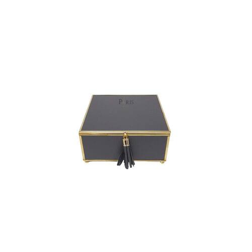 Caixa Decorativa Quadrada de Vidro Preto e Dourado