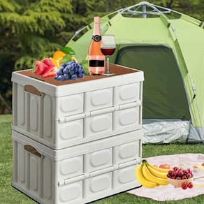 As caixas são dobráveis e empilháveis. Basta empurrar os lados curtos para dobrar rapidamente e deixá-la plana, economizando espaço quando não estiver em uso.