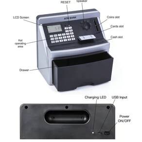 Tamanho: 21,5x14x19,2 cm Material: Plástico1. Simulação realista de caixa eletrônico Projetada para se assemelhar a um caixa eletrônico em miniatura com teclado completo, tela LCD, slot para cartão e aparência de impressora de recibos, oferecendo uma experiência bancária autêntica em casa. 2. Sucção automática de notas com recurso de contagem Exibe automaticamente notas em papel e exibe valores de depósito, ajudando crianças e adultos a monitorar as economias com a contagem digital integrada. 3. Função de senha segura Protege moedas e dinheiro armazenados com um código de segurança programável, permitindo que os usuários definam e redefinam uma combinação de bloqueio pessoal. 4. Ideal para todas as idades. Perfeito como um divertido brinquedo didático para crianças ou como uma caixa de poupança inovadora para adolescentes e adultos, ótima para aniversários, feriados ou motivação financeira pessoal. 5. Design durável e espaçoso Feito de plástico resistente com um compartimento espaçoso para guardar moedas e notas; dimensões: 21,5 x 14 x 19,2 cm — funcional e decorativo.