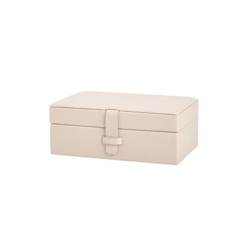 Caixa em Material Sintético Bege Pequena Sugestão de uso: Pode ser usada para guardar acessórios, fotografias, jóias ou apenas como objeto decorativo. Material: MDF e poliuretano Cor: Bege Off White Tamanho: 7x18x12cm