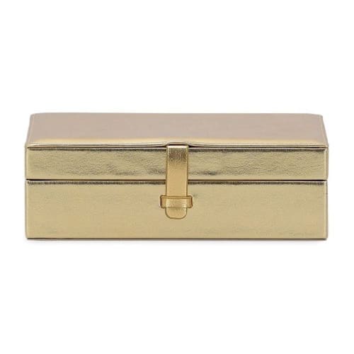 Essa Caixa em MDF com revestimento em PU Dourado é perfeita para armazenar pequenos itens com charme e praticidade. Seu acabamento metalizado e fecho elegante fazem dela uma peça decorativa ideal para compor aparadores, penteadeiras e escritórios.