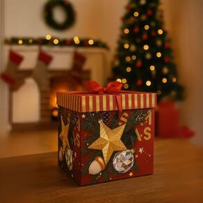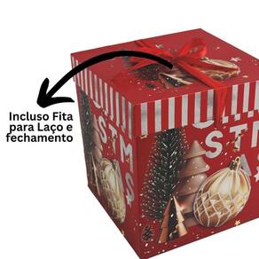 Transforme suas entregas de Natal em momentos ainda mais especiais com esta charmosa embalagem natalina decorada tipo caixa, perfeita para panetones, doces, lembranças e presentes em geral. Com design quadrado e estampa exclusiva em vermelho com tema natalino, ela traz beleza e praticidade para suas celebrações de fim de ano.