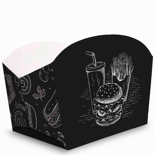 Caixinha Embalagem para Batata-frita, Hamburguer, Salgados e Porções Modelo Preto e Branco 100 unidades