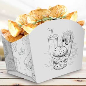 Caixinha Embalagem para Batata-frita, Hamburguer, Salgados e Porções Modelo Branco e Preto 200 unidadesA Embalagem para Batata-frita, Hamburguer, Salgados e Porções faz parte da nossa linha exclusiva de produtos, ideal para consumo imediato.Descrição do Produto:Modelo: branco e pretoMaterial: cartão triplex Dimensões: 8cm x 7cm x 10 na base cm AxLxC Itens inclusos: 200 unidadesSuper prática ;- Ideal para usar no delivery, food-truck, lanchonete ou evento, nossa Caixinha para Batata-frita e Porções é muito importante para o sucesso do seu produto no mercado. A importância da embalagem está em sua função, uma vez, que ela é o principal meio de fazer a conexão entre o produto e o seu cliente. Quem nunca comprou um produto apenas pela embalagem, não é mesmoAlém de ser bonita, nossa Caixinha para Fritas e Salgados possui atributos que serão perceptíveis ao seu cliente, como a praticidade, a conveniência e a facilidade de consumo do seu produto. Também traz segurança, higiene e conforto para o seu cliente, além de demonstrar proteção ao seu produto. Marca: Pdv Print