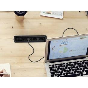 Caixa Embutir Para Mesa Móveis Com 03 Tomada 10A New Slim Preta New Slim - Linha Facility Modelo já acompanha 03 tomadas de 10A Caixa de tomadas para mesas de escritórios, mesas de estudas ou bancadas modernas. Organiza o espaço e evita acidentes.Melhor custo da categoria Facility que soluciona a conectividade em mobiliários.Fabricação: Termoplástico.Características do Produto:Baixo custo e fácil instalação.Passa cabos tipo rampa com abertura para passagem de cabos até 10 mm de diâmetro.Saída para os cabos em qualquer posição linear à caixa.Tampa com abertura mecânica manual . Capacidade: Para 3 tomadas tipo painel e 3 conectores Keystone. Modelo compatível com tomadas TIPO PAINEL das WEG ou Margirius. módulos dos modelos para alvenaria não funcionam na caixa . Dimensional externo: 242 x 53 x H=89 mm Gabarito de corte: 228 x 46 mm