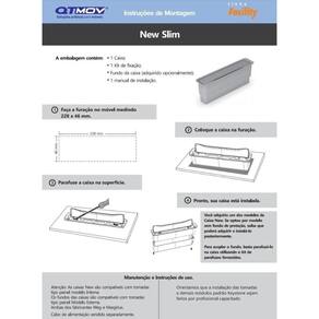 New Slim - Linha Facility Modelo já acompanha 03 tomadas de 20A Caixa de tomadas para mesas de escritórios, mesas de estudas ou bancadas modernas. Organiza o espaço e evita acidentes.Melhor custo da categoria Facility que soluciona a conectividade em mobiliários.Fabricação: Termoplástico.Características do Produto:Baixo custo e fácil instalação.Passa cabos tipo rampa com abertura para passagem de cabos até 10 mm de diâmetro.Saída para os cabos em qualquer posição linear à caixa.Tampa com abertura mecânica manual . Capacidade: Para 3 tomadas tipo painel e 3 conectores Keystone. Modelo compatível com tomadas TIPO PAINEL das WEG ou Margirius. módulos dos modelos para alvenaria não funcionam na caixa . Dimensional externo: 242 x 53 x H=89 mm Gabarito de corte: 228 x 46 mm Marca: Não Informado Ean: 7899951493794