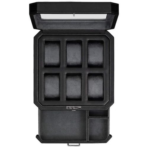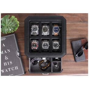 6 GRANDES COMPARTIMENTOS DE RELÓGIO Cada almofada mantém um relógio pequeno ou grande perfeitamente no lugar, até um ao lado do outro. Há muito espaço entre a tampa e as almofadas para acomodar relógios de todos os tamanhos. GAVETA VALET Uma gaveta deslizante pode conter relógios e pulseiras adicionais ou oferece espaço extra para guardar suas abotoaduras, anéis, prendedores de gravata, óculos de sol, canetas, dinheiro, cartões ou ferramentas de relógio. QUALIDADE INCOMPARÁVEL E DESIGN SOFISTICADO Nossa caixa possui um design exclusivo de meados do século que é a combinação perfeita de classe e funcionalidade. Cada caixa usa uma moldura de madeira envolta em couro PU de alta qualidade. O interior é coberto com um elegante tecido de micro camurça cinza Marca: Não Informado