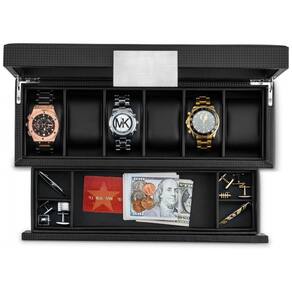 6 COMPARTIMENTOS GRANDES Cada almofada de relógio mantém um relógio pequeno ou grande perfeitamente no lugar. Há muito espaço entre a tampa e as almofadas para acomodar relógios de todos os tamanhos. VALET oferece mais espaço para guardar suas abotoaduras, anéis, prendedores de gravata, óculos de sol, canetas, dinheiro, cartões ou ferramentas de relógio. DESIGN ÚNICO, CONVENIENTE E ATRATIVO A Glenor Co. Watch Box possui um design único, bonito e mais conveniente do que as outras caixas de relógios por aí. Nossa talentosa equipe de designers trabalhou arduamente para produzir o equilíbrio perfeito entre moderno, sofisticação e classe para criar esta caixa única e sua atraente placa de metal. Ao contrário de outras, nossa caixa pode ser facilmente aberta e fechada com uma mão para o uso mais conveniente. CAIXA DE PRESENTE E CARTÃO EM BRANCO INCLUÍDOS Uma elegante caixa de presente e um cartão em branco estão incluídos em cada caixa de relógio para o presente mais apresentável. Este é um ótimo presente para um pai, namorado, marido, filho, chefe, amigo ou qualquer outro amante de relógios em sua vida. SEJA FELIZ Glenor Co oferece uma garantia de devolução do dinheiro de 100 de satisfação para garantir a satisfação total do cliente. Você está garantido para acabar feliz Marca: Não Informado