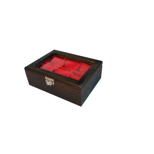 Prático e luxuoso, na linha madeira maciça encontrarmos um toque vintage, objeto decorativo onde são visíveis os veios naturais da madeira. Nossos estojos irão facilitar seu dia a dia com a organização e segurança que sua coleção precisa, além de proporcionar um ambiente mais sofisticado e elegante.Produzida com madeira natural de reflorestamento. Escolhida rigorosamente, totalmente tratada, tingida e envernizada externamente. Internamente, inclusive as divisórias são revestidas com nylon aveludado e as almofadas que acompanham o produto, normalmente são também em tecido aveludado. Na linha madeira maciça é possível observar os veios naturais da madeira. As dobradiças não são aparentes e possuem um limitador. A tampa possui visor com vidro transparente. Acompanha um fecho giratório de pressão em metal, ideal para colocar cadeado. Para proteção do seu móvel, o fundo deste estojo é forrado com tecido. Seus relógios sempre bem protegidos e acomodados confortavelmente, com toda segurança e facilidade no manuseio. Características das caixas para relógio:- Produto fabricado em madeira maciça de qualidade,- Não empena,- Revestimento interno aveludado, inclusive as divisórias,- Fecho giratório de pressão em metal suporta cadeado ,- Tampa de vidro 2 mm,- Fundo forrado com tecido,- Acompanha almofadas para todos os casulos- Medidas aproximadas dos casulos larg x comp x alt : 7,5 x 7,5 x 7,0 cm.Relógios não acompanham o estojo - Imagens meramente ilustrativas