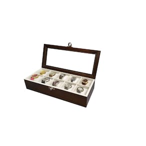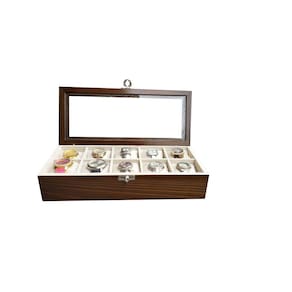 Prático e luxuoso, na linha madeira maciça encontrarmos um toque vintage, objeto decorativo onde são visíveis os veios naturais da madeira. Nossos estojos irão facilitar seu dia a dia com a organização e segurança que sua coleção precisa, além de proporcionar um ambiente mais sofisticado e elegante. Produzida com madeira natural de reflorestamento. Escolhida rigorosamente, tratada com fungicidas e anticupins. Envernizada externamente com verniz poliuretano industrial. Internamente as laterais e divisórias são revestidas com nylon aveludado. E as almofadas que acompanham o produto, normalmente são também em tecido aveludado. Na linha madeira maciça é possível observar os veios naturais da madeira. As dobradiças não são aparentes e possuem um limitador. A tampa possui visor com vidro transparente. Acompanha um fecho giratório de pressão em metal, ideal para colocar cadeado. Seus relógios sempre bem protegidos e acomodados confortavelmente, com toda segurança e facilidade no manuseio. Características das caixas para relógio: Produto fabricado em madeira maciça de qualidade, Padrão Imbuia, Não empena, não trinca, não racha, Revestimento interno aveludado, inclusive as divisórias, Fecho giratório de pressão em metal suporta cadeado , Tampa de vidro 2 milímetros, Acompanha almofadas para todos os casulos, Medidas aproximadas dos casulos larg x comp x alt : 7,5 x 7,5 x 7,5 cm,Relógios não acompanham o estojo Imagens meramente ilustrativas