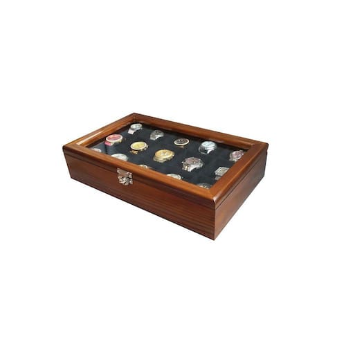 Caixa/Estojo para 15 Relógios - Tabaco flocado de Preto