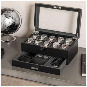 10 COMPARTIMENTOS DE RELÓGIO GRANDES E GAVETA DE VALET Cada almofada mantém um relógio pequeno ou grande perfeitamente no lugar, até um ao lado do outro. Há muito espaço entre a tampa e as almofadas para acomodar relógios de todos os tamanhos. Uma gaveta deslizante pode conter relógios e pulseiras adicionais ou oferece espaço extra para guardar suas abotoaduras, anéis, prendedores de gravata, óculos de sol, canetas, dinheiro, cartões ou suas ferramentas de relógio. QUALIDADE INCOMPARÁVEL E DESIGN SOFISTICADO Nossa caixa possui um design único e moderno que é a combinação perfeita de classe e funcionalidade. Cada caixa usa uma moldura de madeira envolta em couro PU de alta qualidade. O interior é revestido com um elegante tecido de micro camurça cinza. PRESENTE PERFEITO Seja um presente de Natal, presente de aniversário para seu marido, presente de aniversário para seu filho, presente de Dia dos Pais para o pai ou mesmo dia das mães, você certamente encantará até o destinatário mais difícil de agradar. Nosso design unissex é perfeito para qualquer colecionador de relógios em sua vida Ou dê a si mesmo Seus relógios merecem Marca: Não Informado