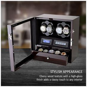 Caixa, Estojo Rotativo Automático para Relógios com Luz e Painel de Controle, 4 Lugares, LEADER WATCH WINDERS X205, Preto