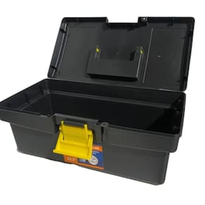 Produto: Caixa de Ferramentas Modelo: Sem bandeja removível Cor: Preto e amarelo Uso Indicado: Armazenar e transportar ferramentas, peças e acessórios em geral Tamanho: 12,5" Medidas: 31,5 x 16,5 x 12,5 cm Material: Polipropileno