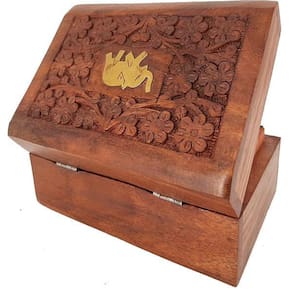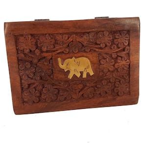 É uma peça linda e requintada com o detalhe de um elefantinho dourado. Extremamente resistente para guardar jóias, japamala, velas, cartas de tarô entre outras coisas.