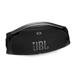 Som potente. Durante o dia todo. Acabamos de tornar a nossa mais poderosa caixa de som Bluetooth portátil ainda melhor. A silhueta icônica da JBL Boombox 3 tem uma nova e ousada atualização com uma alça de metal resistente e partes em silicone, tampas laterais duplas e tecido exclusivo à prova d'água e à prova de poeira. Ela também foi redesenhada por dentro, acrescentando um novo subwoofer que reproduz graves muito mais profundos e o potente JBL Original Pro Sound, tudo sem qualquer sinal de distorção E 24 horas de reprodução levam você desde o treino matinal até um fim de noite com seus amigos. E para um som praticamente ilimitado, conecte instantaneamente várias caixas de som com o aplicativo JBL Portable.