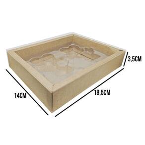 Dimensões: aproximadamente 3 cm de altura, 14 cm de largura e 18 cm de comprimento