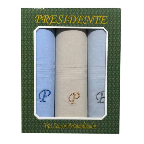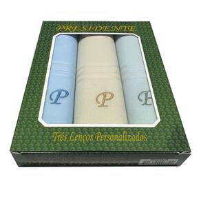 Caixa contendo 3 unidades de Puro Algodão com Iniciais Bordadas fabricados com tecido mercerizado 100% algodão.