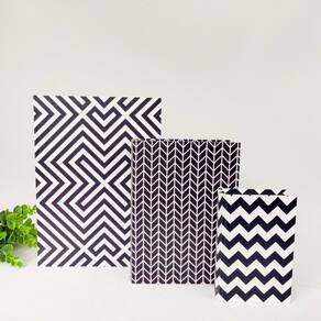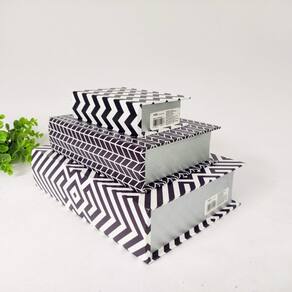 Caixa Livro Decorativa Zig Zag 3 Peças 30/23/16Cm Preto/Branco