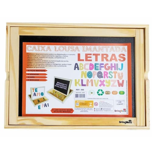 Caixa lousa imantada letras brinquedo infantil em madeira caixa lousa imantada letras brinquedo infantil em madeira - ref. 060