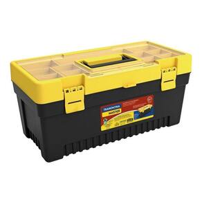 Produto Caixa de Ferramentas Tipo de Caixa de Ferramentas Simples Uso Indicado Para guardar ferramentas manuais e elétricas Linha Master Marca Tramontina Modelo 43802/020 Altura 24,5 cm Largura 51,5 cm Profundidade 26,5 cm Comprimento 51,5 cm Dimensão 51,5x26,5x24,5 cm Altura em Polegadas 9.65 Largura em Polegadas 20.28 Profundidade em Polegadas 10.43 Comprimento em Polegadas 20.28 Dimensão em Polegadas 9,65x10,43x20,28 Material Metal e Plástico Tipo de Material Aço e Polipropileno Possui Fecho Sim Tipo de Fecho Fecho de Plástico Material do Fecho Plástico Capacidade de Peso 12 Kg Cor Preto e Amarelo Tonalidade Amarelo e Preto Acompanha Alças Sim Tipo de Alça Externa Material da Alça Plástico Acompanha Bandeja Não Acompanha Gaveta sem Gavetas Possui Organizador Sim Peso do Produto 11,86 Kg Produto Acompanha Embalagem Não Altura da Embalagem 490 mm Largura da Embalagem 510 mm Profundidade da Embalagem 775 mm Peso do Produto na Embalagem 2,33 Kg Dimensão da Embalagem 490x510x775 mm Garantia do Fabricante 3 mes es Observações sobre a Garantia do Fabricante Garantia total contra vícios ou defeitos de fabricação. Ideal para armazenar e transportar ferramentas, artigos de pesca e outros objetos, como parafusos e pregos. Sua tampa organizadora tem 11 divisórias onde você pode separá-los por tamanho e modelo, de acordo com o que mais utiliza. Ela ainda possui duas travas plásticas e possibilita o uso de cadeado para garantir a segurança de seus itens. A caixa é produzida em plástico, é leve e altamente resistente.