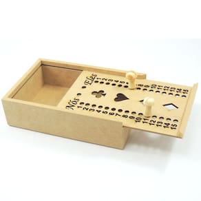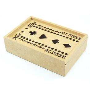 Informações gerais ------------------------------------ madeira mdf de com um ótimo acabamento pronto para você apenas lixar e criar seus trabalhos. Possui ótimo acabamento deixando a peça pronta para receber tinta. Material muito utilizado em trabalhos de decoração, pintura, decoupage, e muito mais. - caixa estojo para baralho com marcador para truco - inclui dois pinos para marcação - marcação até 15 pontos - detalhes recortados a laser --------------- medidas --------------- - comprimento: 18 cm - largura: 12 cm - altura: 5 cm - peso: 210 g Marca: Atelie Arte Coisas