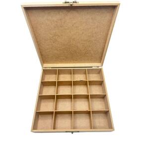 Com suas 16 divisórias removíveis de 7x7 cm, você pode personalizar o espaço de acordo com suas necessidades, sem danificar a peça. O fecho e a dobradiça garantem a segurança dos objetos armazenados, tornando essa caixa ideal para presentear em ocasiões como batizados, casamentos e aniversários.