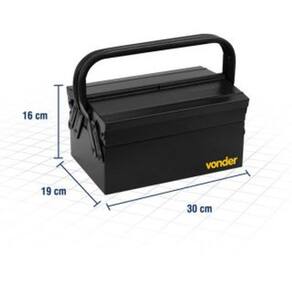 Conteúdo da Embalagem: 1 Caixa metálica para ferramentas Indicada para acondicionamento de ferramentas e afins Produzida em estrutura em chapa de aço 1010/1020 e pintura a pó. Possui 3 gavetas, uma fixa e duas articuladas, alça reforçada e porta cadeado. Comprimento da caixa para ferramentas: 30 cm Largura da caixa para ferramentas: 19 cm Altura da caixa para ferramentas: 16 cm Material da caixa para ferramentas: Chapa de aço Cor da caixa para ferramentas: Preta Capacidade de carga kgf : 20 kgf Garantia - E CDC : Garantia legal: 90 dias