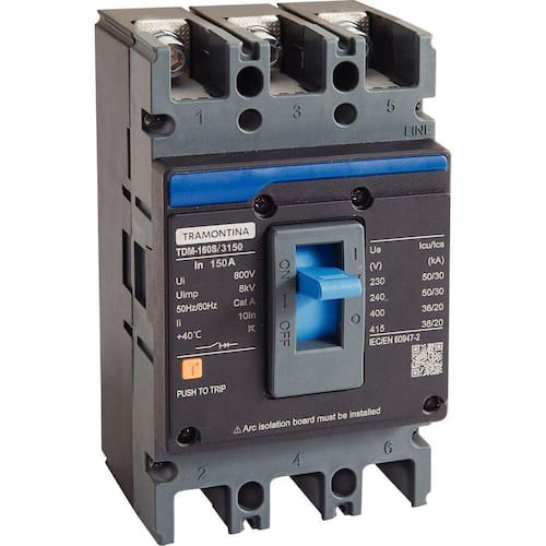 A caixa moldada Tramontina TDM 160S 3150 3P 150 A 50 kA é a escolha ideal para garantir maior proteção para suas instalações elétricas. Ela tem as mesmas funções de proteção que os mini disjuntores, que protegem a rede contra sobrecargas e curto-circuitos. Ela possui informações gravadas na parte frontal e um botão de teste de sistema desarme, que está logo abaixo da manopla de acionamento. A caixa é ideal para utilização principalmente em correntes acima de 100 Amperes e vai deixar sua rede mais segura e com mais qualidade!