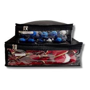 Sugestão de uso: Para organização de enfeites como laços, bolas, adereços, guirlandas, pequenos enfeites, e até mesmo decorações de outros eventos. Também pode ser utilizado para organizar mala de viagem, armazenar itens esportivos, infláveis, brinquedos, entre outros.