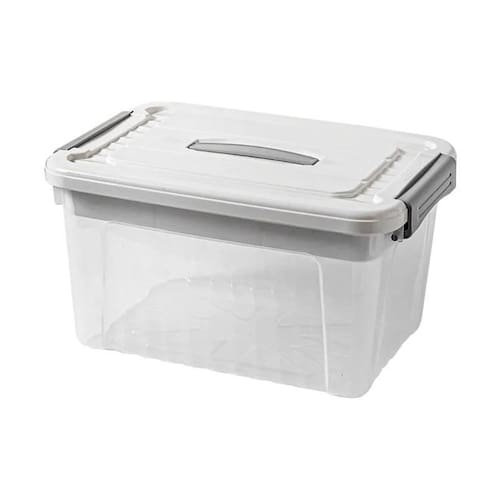 Produzida em plástico resistente e de alta durabilidade, esta caixa conta com uma tampa branca equipada com uma alça embutida que facilita o manuseio, além de travas laterais firmes que garantem o fechamento adequado, impedindo que a tampa se solte durante o transporte.