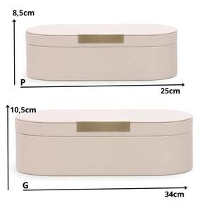 Dimensões Altura:8,5cm Largura:25cm Profundidade:12cm Material: mdf e Revestimento PU Cor: Bege