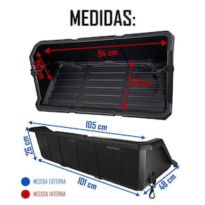Caixa Organizadora Carga Tg Poli Medida Externa 105X48X26Cm Preto Descrição:Caixa organizadora de cargas, ideal para caçamba de caminhonete pickup's e porta-malas de suv's universal preto.Evite que suas compras fiquem espalhadas na caçamba ou porta-malas e que sejam danificadas por ficarem rolando de um lado para o outro, durante o trajeto e dificultando a retirada dos produtos que normalmente vão para o fundo. Especificação tecnica:- cor: preto- material: polipropileno pp - fixação: cintas e ganchos com regulagem - ótimo acabamento.- pronto para instalação.- organiza pequenos e médios objetos com facilidade e praticidade.- fácil de limpar.- evita marcas, arranhões e manchas na caçamba/porta-malas do veículo. Conteúdo da embalagem- 01 caixa organizadora Sugestões de compatibilidade: Fiat- strada- toro- pulse Gm- s10- montana- spin- equinox- tracker Vw- amarok- saveiro- t-cross- nivus- taos Ford - maverick- ranger- f-150- ecosport- bronco Toyota - corolla cross- hilux- sw4- rav4 Citroen - c4 cactus Peugeot- 2008- 3008 Renault- duster- oroch- captur Nissan- frontier- kicks Mitsubishi- l200- pajero- eclipse cross Ram- 1500- 2500- 3500