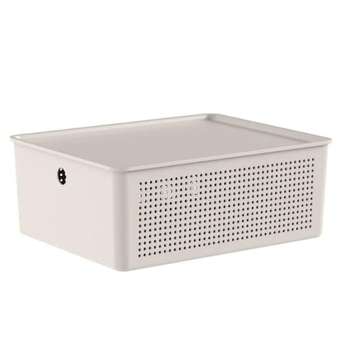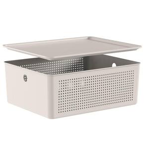 Caixa Organizadora com Tampa 12L Ou Bege 34x27x13cm Cesto Flow Closet Lavanderia.