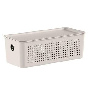Caixa Organizadora com Tampa 27x12x10cm Bege Cesto Flow 3L Ou Lavanderia Closet.
