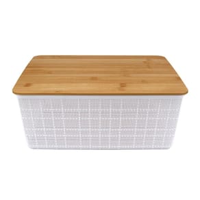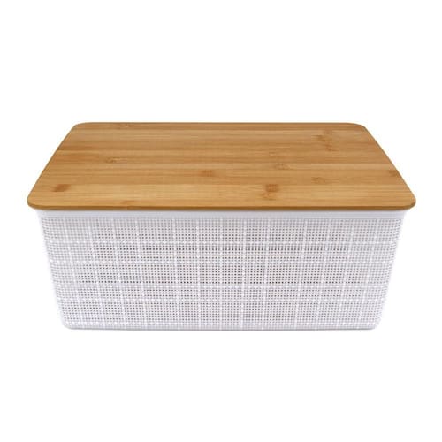 Caixa Organizadora com Tampa Bambu Branco 13cm - A\CASA