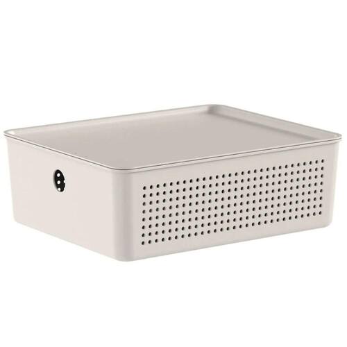 Caixa Organizadora com Tampa Ou Bege 27x22x9cm Cesto Organizador Flow 5,4L Closet Lavanderia.