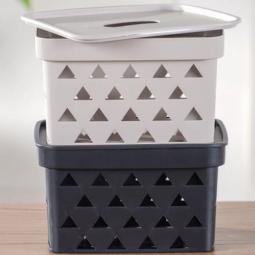 Caixa Organizadora Com Tampa Triângulos 3,6l Preto Caixa Organizadora com Tampa Triângulos 3,6L Preto - Características Gerais do Produto: - Composição: 100% Polipropileno - Material: Polipropileno - Informações Adicionais: Possui abertura nas laterais para facilitar o transporte - Altura (cm): 12.00 - Largura (cm): 17.00 - Comprimento (cm): 22.00 - Peso (g): 180.00 - Volume (ml): 3600.00 Acompanha o produto: - 1 Caixa Organizadora com Tampa Triângulos 3,6L Garantia: - 3 meses