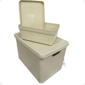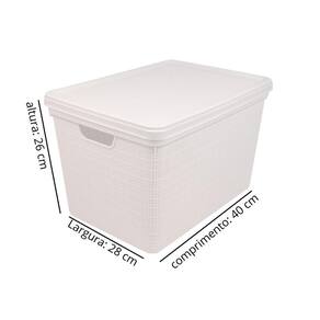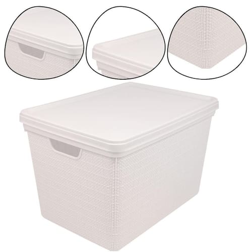 Caixa Organizadora Juta 22 Litros Com Tampa Jaguar Cor Bege Organize sua casa com estilo e praticidade A Caixa Organizadora Juta 22L é perfeita para quem busca funcionalidade e elegância. Com textura exclusiva simulando a juta, ela adiciona um toque sofisticado a qualquer ambiente. A caixa vem com tampa, garantindo maior proteção e organização, além de permitir empilhamento com outros tamanhos, otimizando seu espaço. Transforme a organização com muito mais charme e versatilidade Vantagens:
