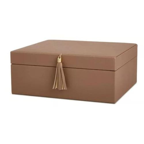 Dimensões Altura: 11cm Largura:27,00cm Profundidade: 23cm Material: Mdf e Revestimento em Linho Cor Marrom