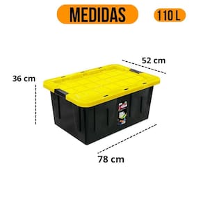 Alta Capacidade: 110 litros de espaço interno para guardar desde ferramentas até brinquedos, roupas, documentos, mantimentos e mais.