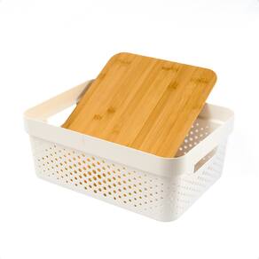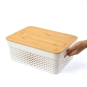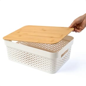 Caixa Organizadora Poá com Tampa de Bambu Oikos Multiuso Branca