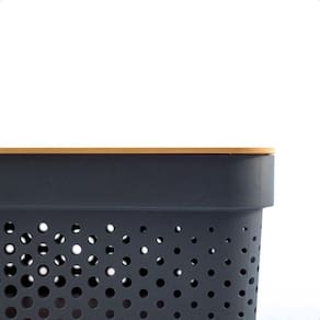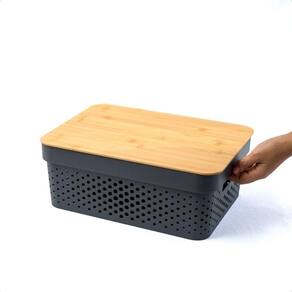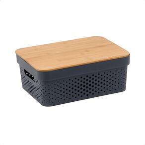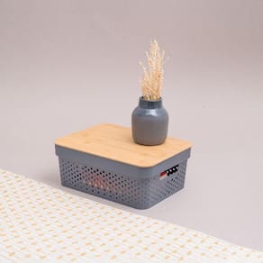 Caixa Organizadora Poá com Tampa de Bambu Oikos Multiuso Cinza