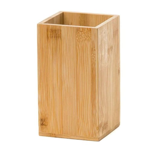 Cor: amadeirado Dimensões: 9cm x 9 cm x 14 cm Composição: bambu Contém 1 peça