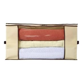 Mantenha seus edredons e cobertores protegidos e organizados com estes práticos protetores fabricados em TNT, que impedem que a poeira e sujeiras do tempo entrem em contato com as peças, ao mesmo tempo que garantem que elas respirem dentro do organizador e o visor lateral em plástico cristal possibilita que você possa empilhar vários organizadores e ainda conseguir enxergar o que tem guardado lá dentro A abertura em zíper também ajuda muito na hora de guardar os cobertores, então leve esta praticidade para seu guarda roupa Ele é ideal para Edredom, roupas de Lã, toalhas, lençóis,travesseiro, etc.