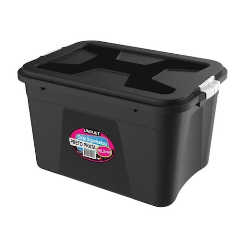Caixa Organizadora Preta 56 Litros com Travas PP Uninjet TFB Caixa Organizadora Em Polipropileno 56 Litros Uninjet