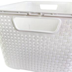 Caixa Organizadora 15 litros Empilhável Rattan Esse caixa é perfeita para ajudar na organização da sua casa ou escritório de uma forma simples e elegante. Ótima para guardar acessórios, roupas de cama, livros, maquiagens, documentos entre outros objetos. Feita em plástico resistente, toda trabalhada com textura de tramas.Pode empilhar mais de uma caixa, além de otimizar o espaço, deixa os utensílios mais organizados. ESPECIFICAÇÕES:Material: PlásticoDimensões: 18cm altura x 35cm comprimento x 26cm larguraCapacidade: 15 litrosCor: Branca CONTÉM:01 CAIXA ORGANIZADORA 15 LITROS RATTAN BRANCA